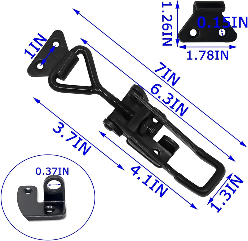 Adjustable Latch Buckle: The pull latch clamp is designed with an adjustable lever handle that has a locking range of 5-7/8 to 6-1/2inches; easy to install, just twist the tension hook for maximum sealing effect