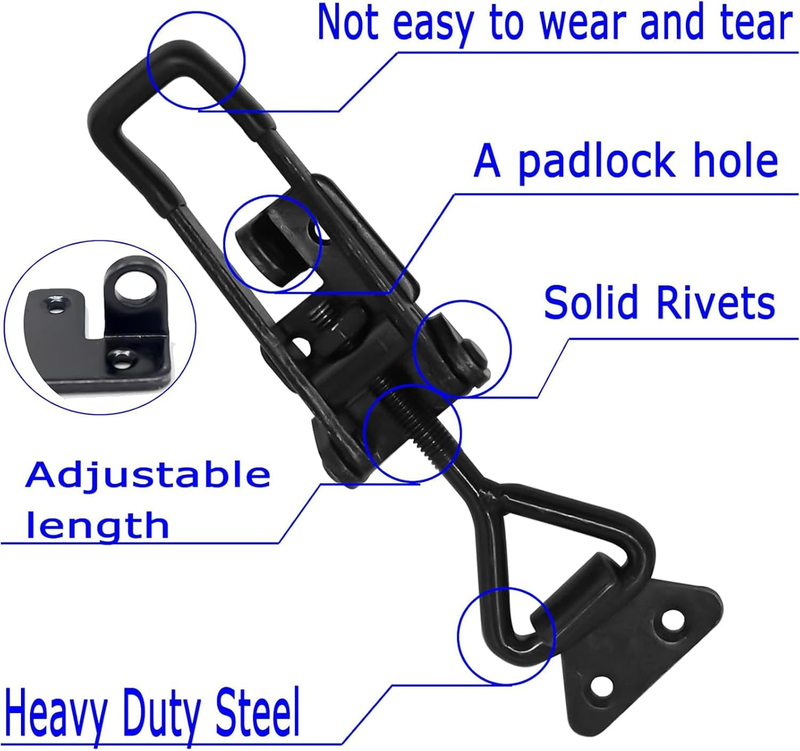 Heavy Duty Latch-Style Toggle Clamps: The adjustable toggle latch made of cold rolled carbon steel with black coated, heavy duty construction and rust-resistant; 1320lbs holding capacity, stronger than normal 4003 style latch clamp
