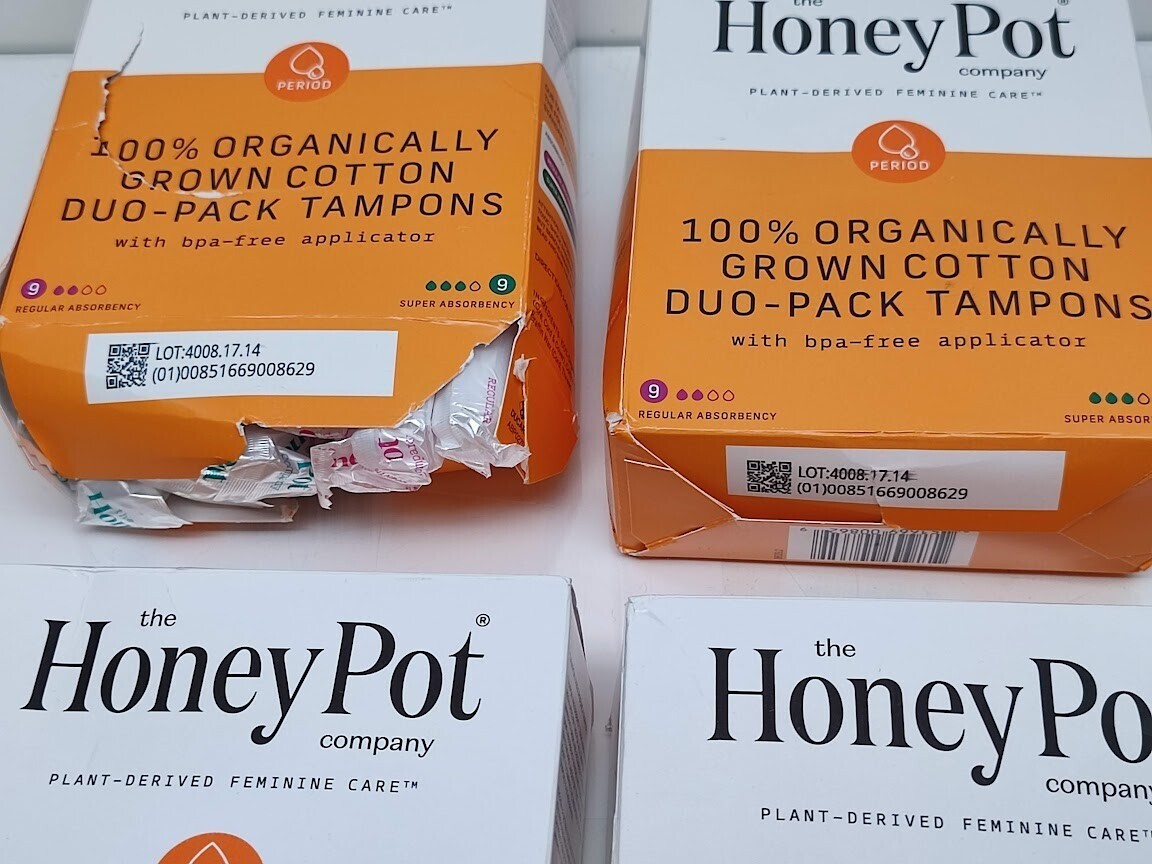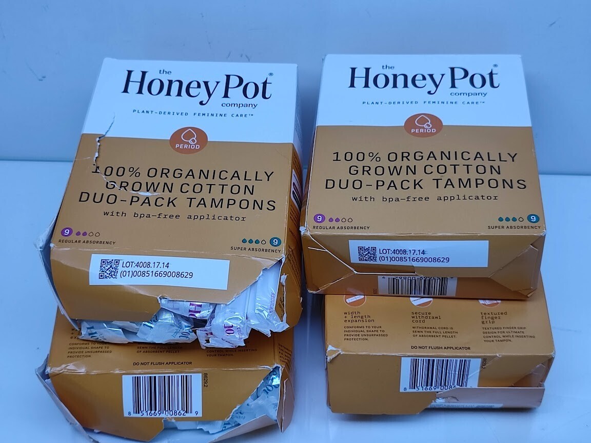- 4pack - Honey Pot 100% Organically Grown Cotton Duo Tampons Regular Crushed box