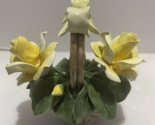 5 1/2" Porcelain Capodimonte Yellow Roses in Basket with Yellow Bow On Top