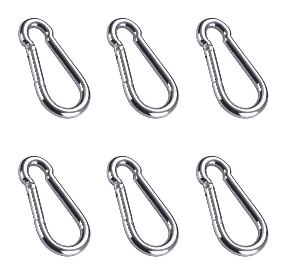 - 5/16" x 3-1/8" SS Spring Loaded Snap Hook Caribener Clips for Keychain,