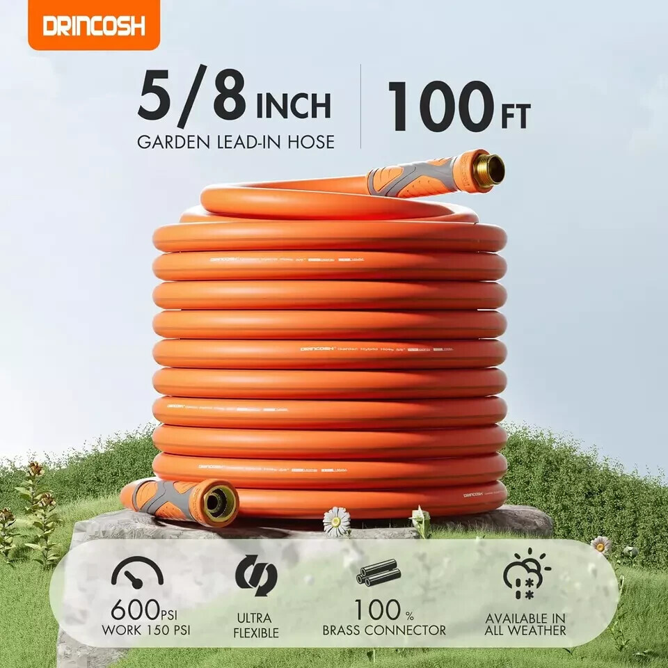 5/8" 100ft Garden Hose Burst 600 PSI Lead-In Hose Durable Water Hose Lightweight