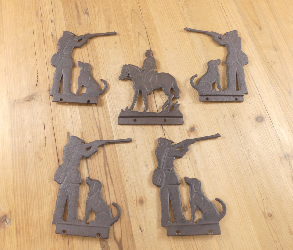 5 CAST IRON WEATHERVANE TOPS FIGURES WELDING ART STEAMPUNK HUNTER LOT RUSTIC