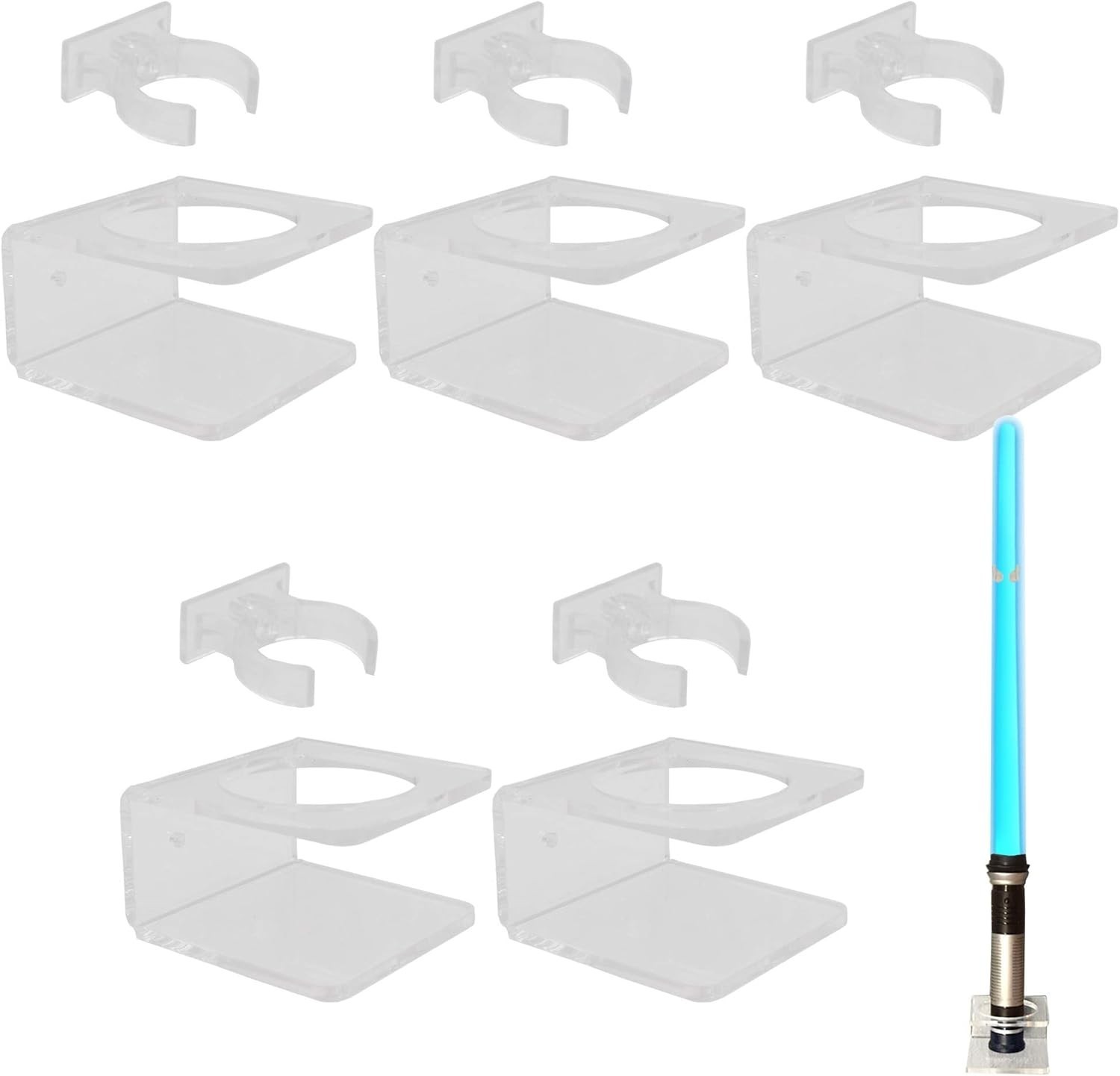 - 5 Clear Acrylic Lightsaber Holders with Screw Covers - Stylish Wall Display