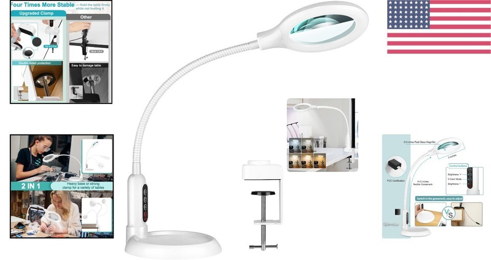5 Color Modes Gooseneck Magnifier with Light ? Perfect for Hands-Free Creativity
