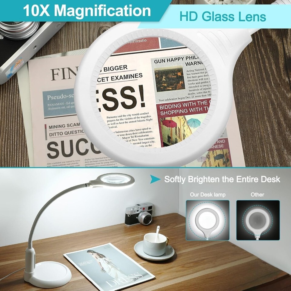 Quality Real Glass Magnifier: The high-quality 10X magnifier glass (5.2-inch lens) is designed for optimal stability and practicality, making it ideal for crafts, reading, sewing, jewelry, and more.