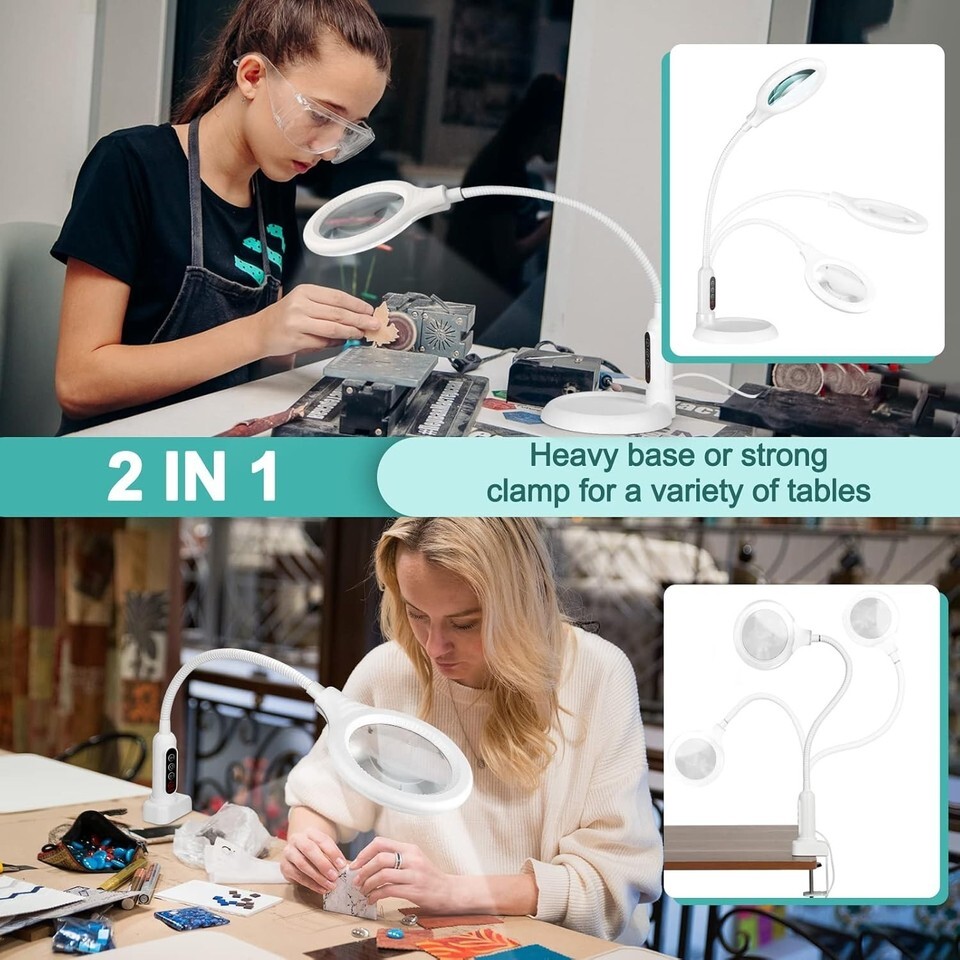 5 Color Modes Gooseneck Magnifier with Light – Perfect for Hands-Free Creativity
