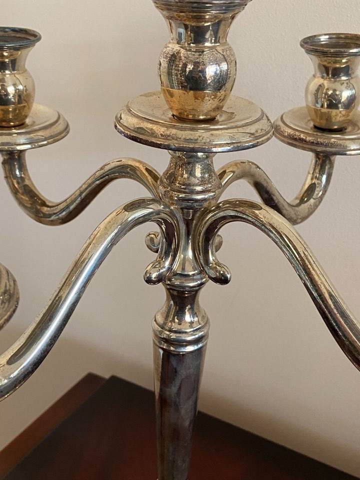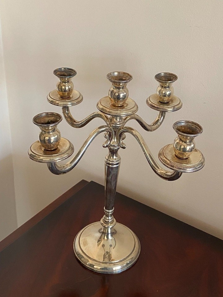 Candelabro 5 fiamme in argento 800.Risale agli anni '90. Pesa grammi 660,00.Ottime condizioni,lievi segni dell'eta. Proviene da una casa nobiliare dell'entroterra siciliano.Regolarmente timbrato. Spedizione tracciabile con imballo accurato.