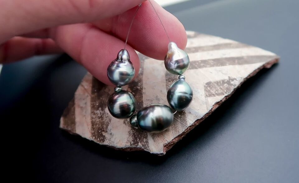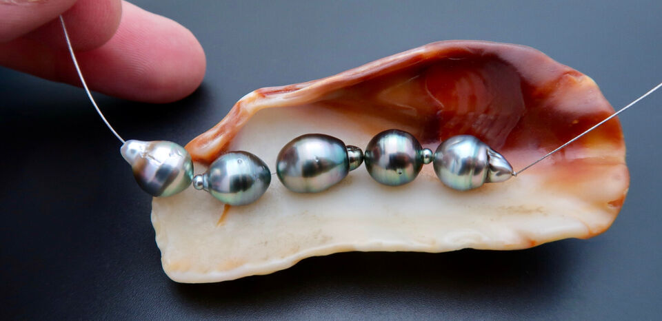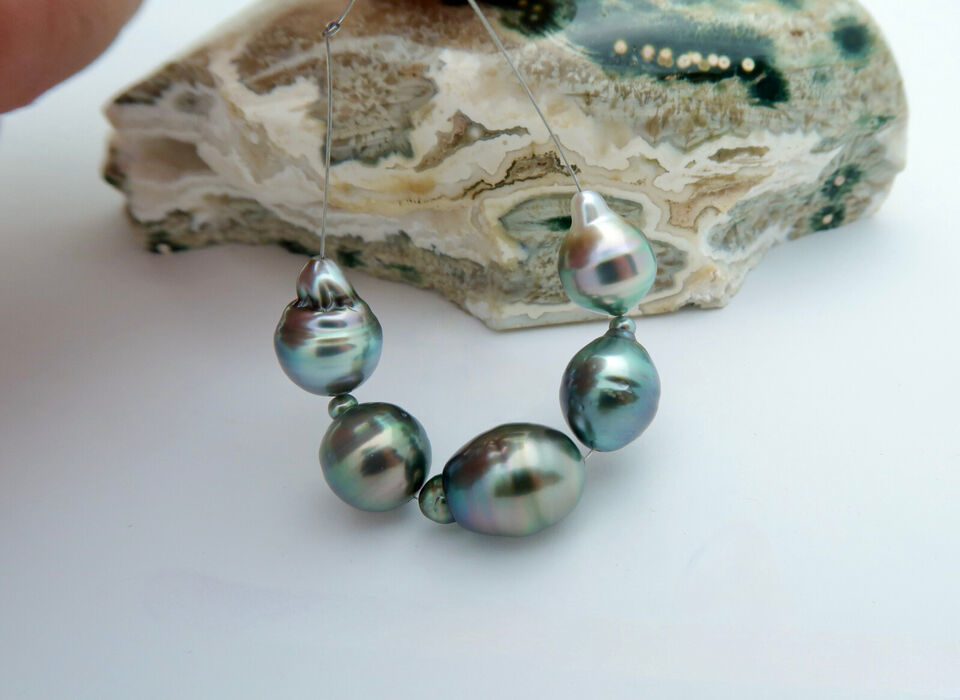 - 5 GORGEOUS RARE AA+ RIKITEA MANGAREVA GAMBIER ISLES BLACK SUPER COLORFUL PEARLS