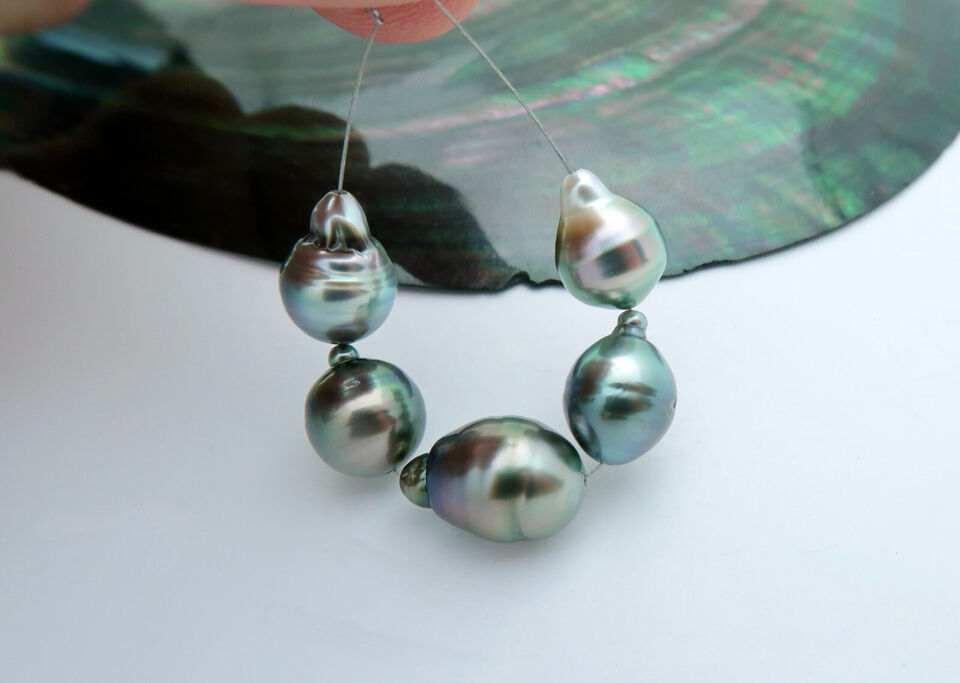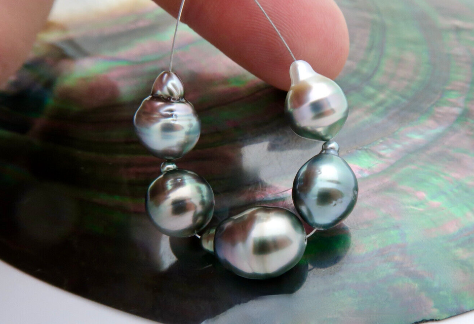 5 GORGEOUS RARE AA+ RIKITEA MANGAREVA GAMBIER ISLES BLACK SUPER COLORFUL PEARLS