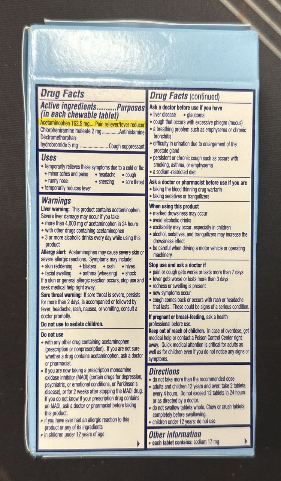 Fast cold and flu relief in orange flavored tablets.