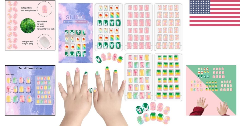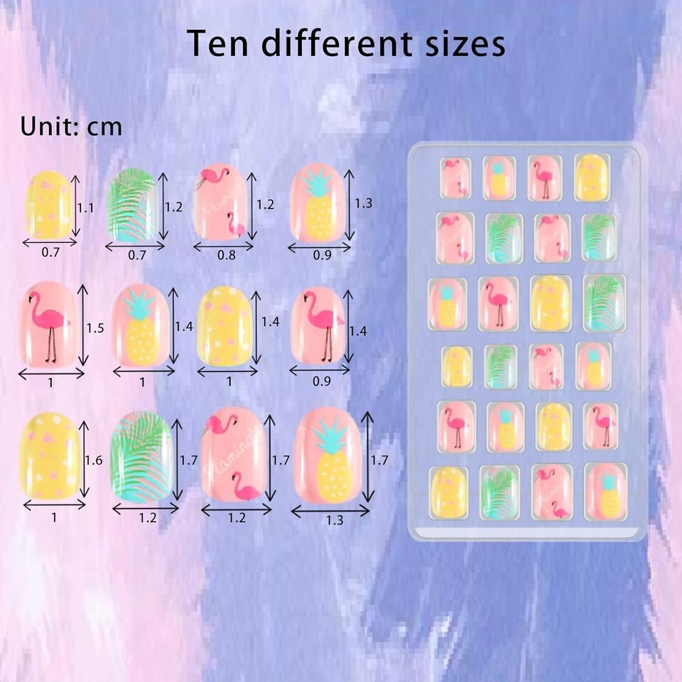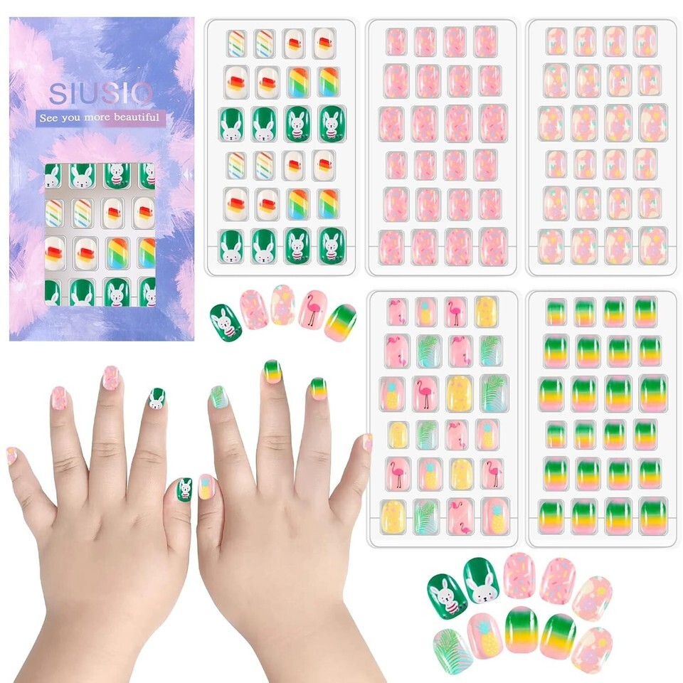 - 5 Pack Kids Acrylic Nail Kit - Colorful Summer Glitter Nails for Young Girls