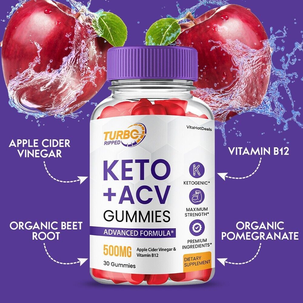 - 5 Pack Turbo Ripped Keto ACV Gummies, Max Strength Formula for Men and Women