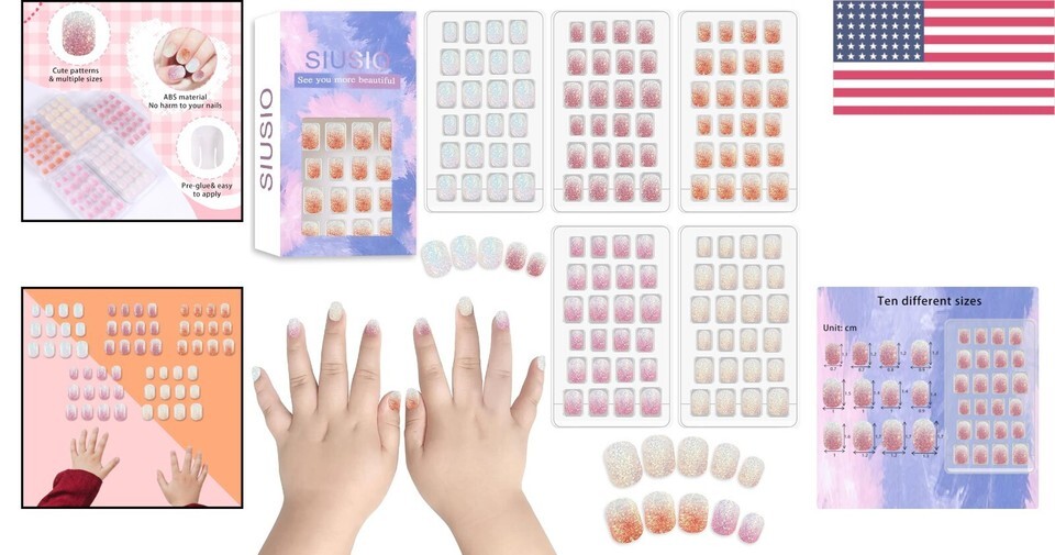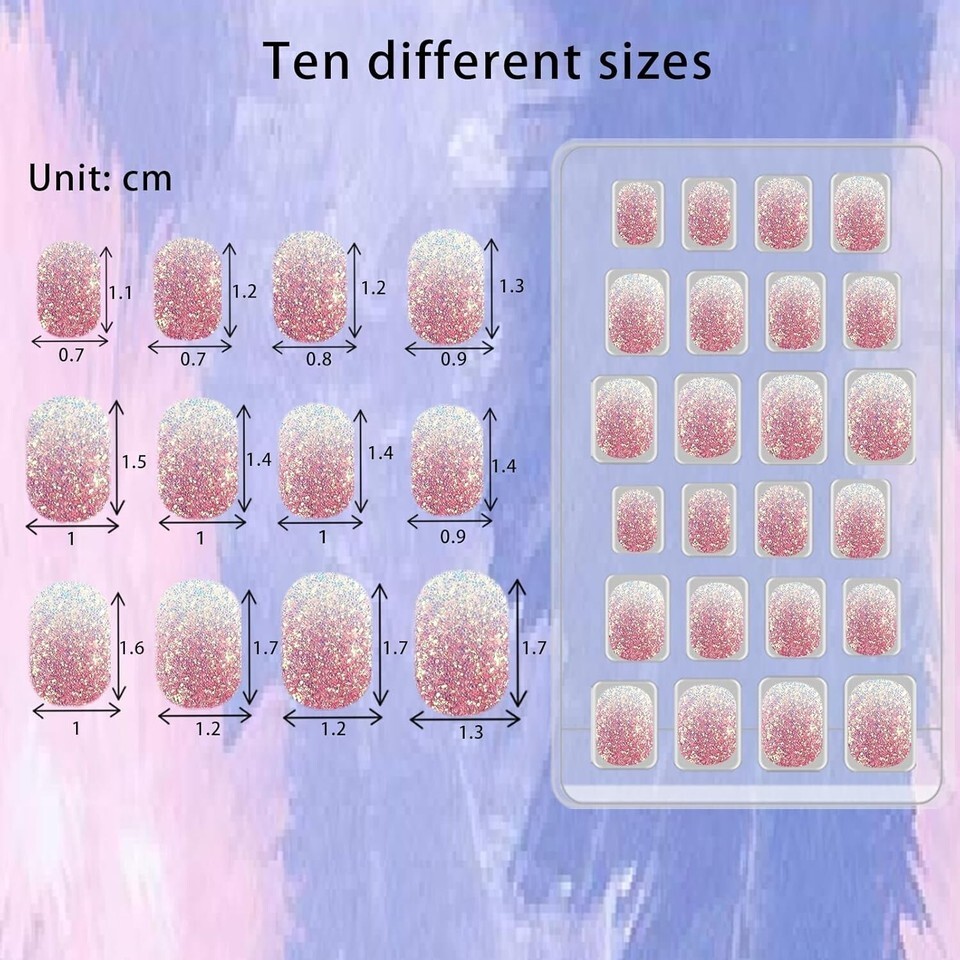 Make every little girl's dream come true with this enchanting 5 pack of colorful glitter acrylic fake nails. Perfect for ages 5 and up, these delightful press-on nails are designed for toddlers, teens, and women with petite hands. Say goodbye to the fuss of nail polish and hello to effortless glamour!