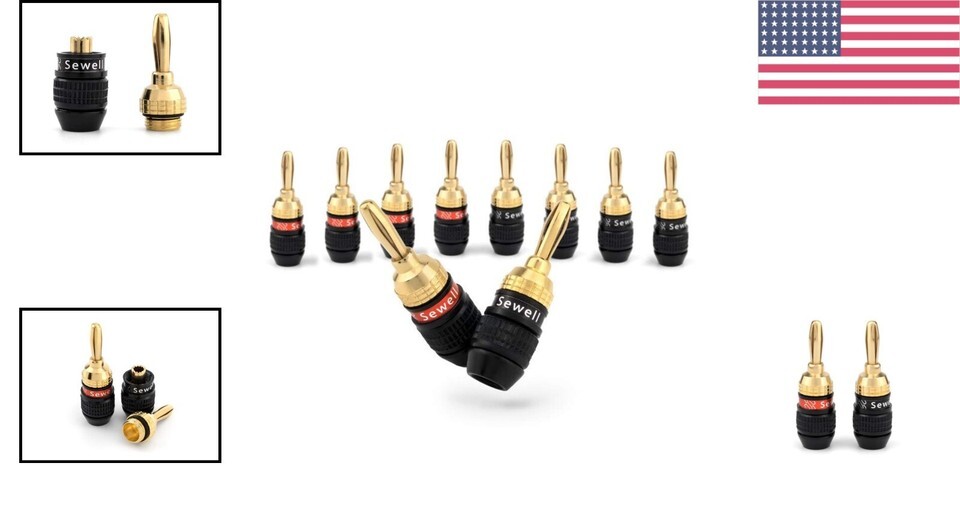 - 5 Pairs of 24K Gold Plated Deadbolt Banana Plugs for Clear Audio Connections