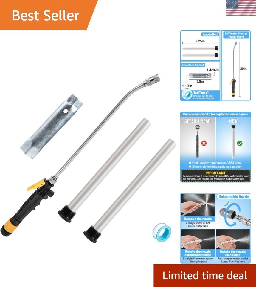 - 5-Pcs RV Water Heater Anode Rod & Flush Wand Set for Efficient Maintenance