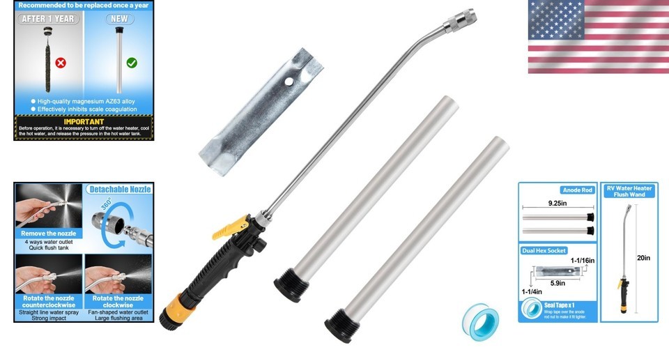 Don't compromise on quality - order your 5-Pcs RV Water Heater Anode Rod Flush Wand Set today!