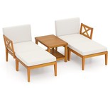 - 5 Piece Acacia Wood Patio Chaise Lounge Chair Set with Ottoman and Cushions-Whit