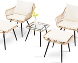 - 5-Piece Outdoor Wicker Patio Bistro Set with Ottoman for Balcony