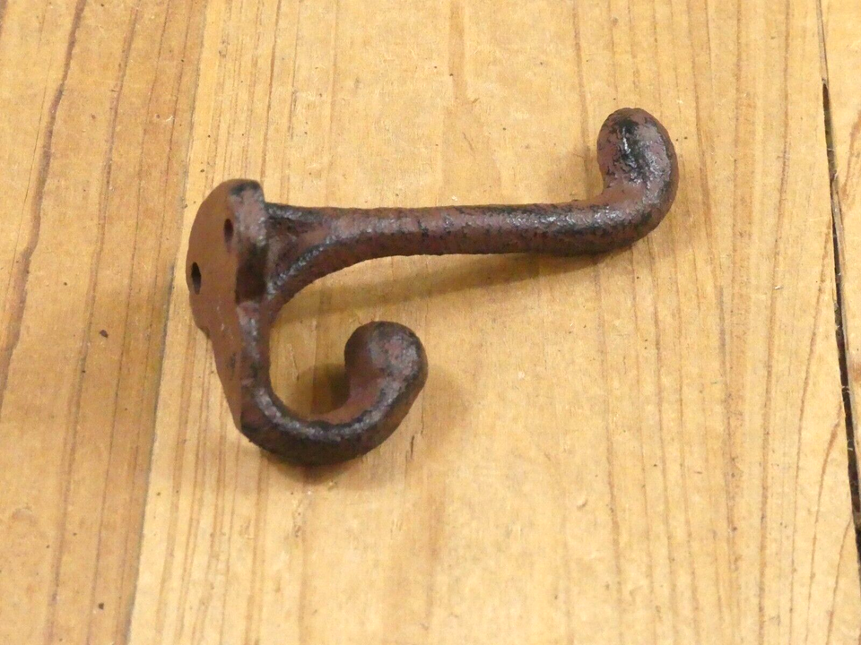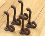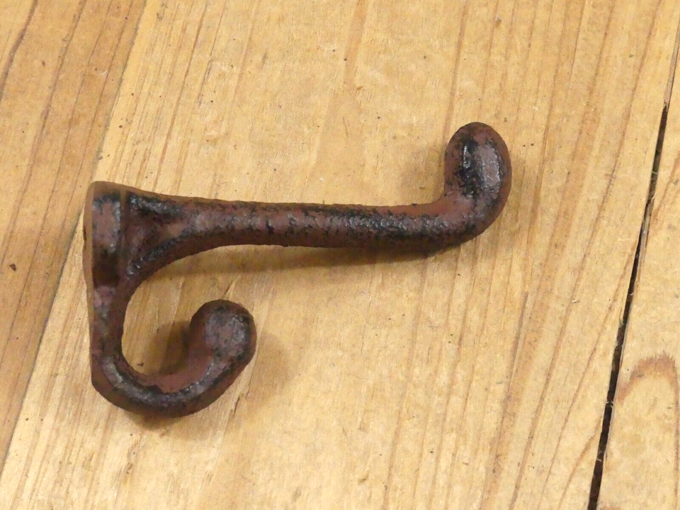 - 5 RUSTIC COAT HOOKS CAST IRON ACORN 3 1/4" LONG HOOK HAT WALL SCHOOL TOWEL