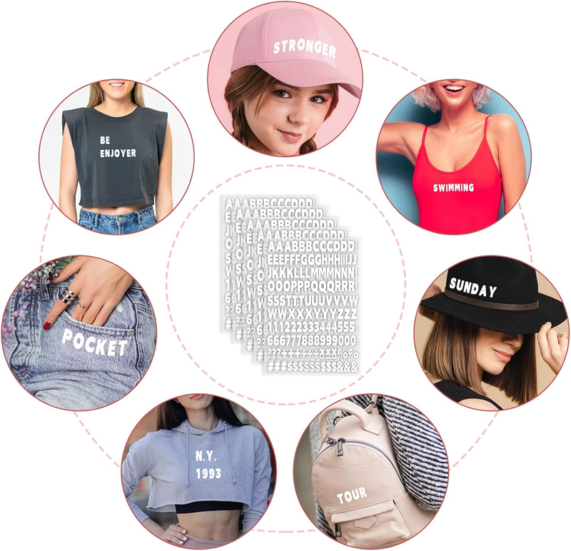 ?830 Pcs Heat Transfer Letters Set? Comkrivy iron on letters for clothing comes with 5 sheets of 1 inch white iron on letters, it contains 390 pcs letters, 150 pcs numbers, and 290 pcs symbols for a total of 830 pieces, sufficient quantity for you to design your clothes, T-shirts, jerseys, bags, hoodies, caps, and various DIY decoration. Great for you to enjoy the fun of DIY crafting and share with your family and friends.