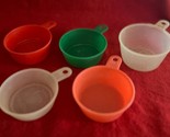 - 5 Vintage Hutzler Plastic Measure Cups 1/4 cup 3 1/3 cups 1/2 cup USA