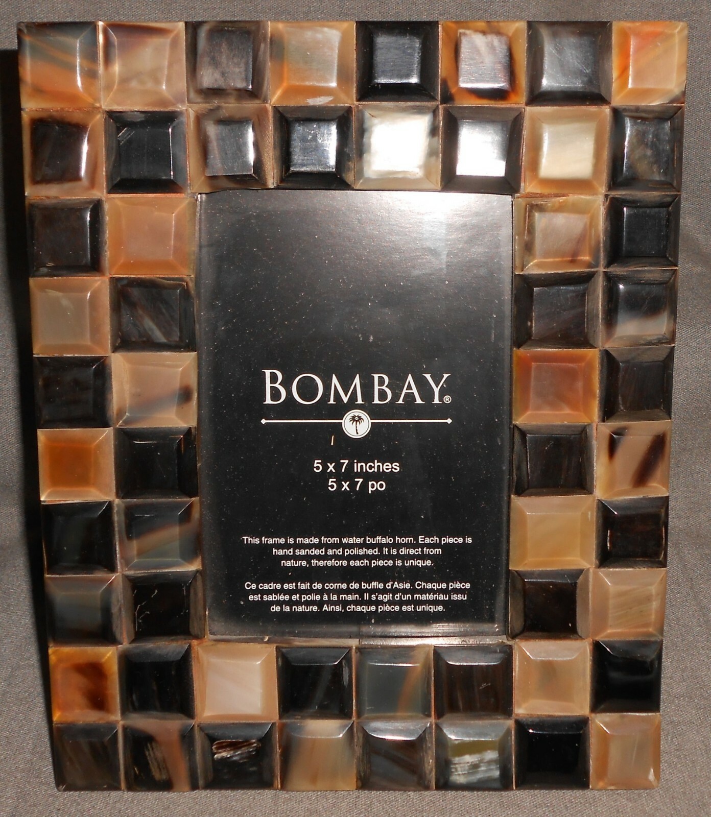 This is a beautiful Frame from The Bombay Company that has polished squares of Water Buffalo Horn (not an endangered species) as the outer frame for a 5 x 7 Photo. The frame measures approx 10 3/4" x 8 3/4" and it is good pre-owned condition with no damage - it is previously owned but has not been used.