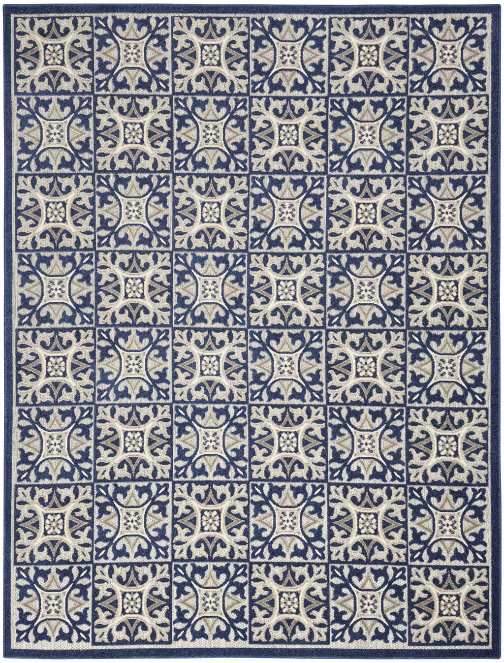 - 5 X 8 Blue Fleur De Lis Stain Resistant Non Skid Area Rug