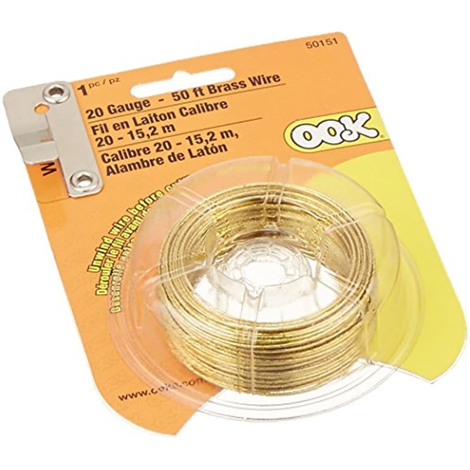 OOK 50151 20 Gauge, 50ft Brass Hobby WireTie or hang anything!Since its inception in 1964, OOK Picture Hanging Hardware Co. has developed more innovative picture hanging hardware solutions than any other manufacturer in the world. Our original commitment to museums and art galleries in the 1960's forged an R D department focusing on creating solutions for unique, high value, hanging challenges. Many of these new developments became important picture hanging innovations for both professional and consumer alike.OOK 50151 20 Gauge, 50ft Brass Hobby Wire Features: Brass wires are self tying, wrap around themselves and stay Soft and flexible Hands stay clean and cut free Recommended to use for art projects, fastening, crafts, and fixing up fences 20 gauge 50'