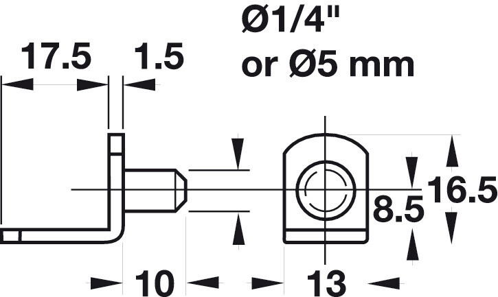 Fits into the corresponding size holes in the side of your cabinet. Solid pin construction ensures lasting strength. Carries a maximum load capacity of 20 lbs.