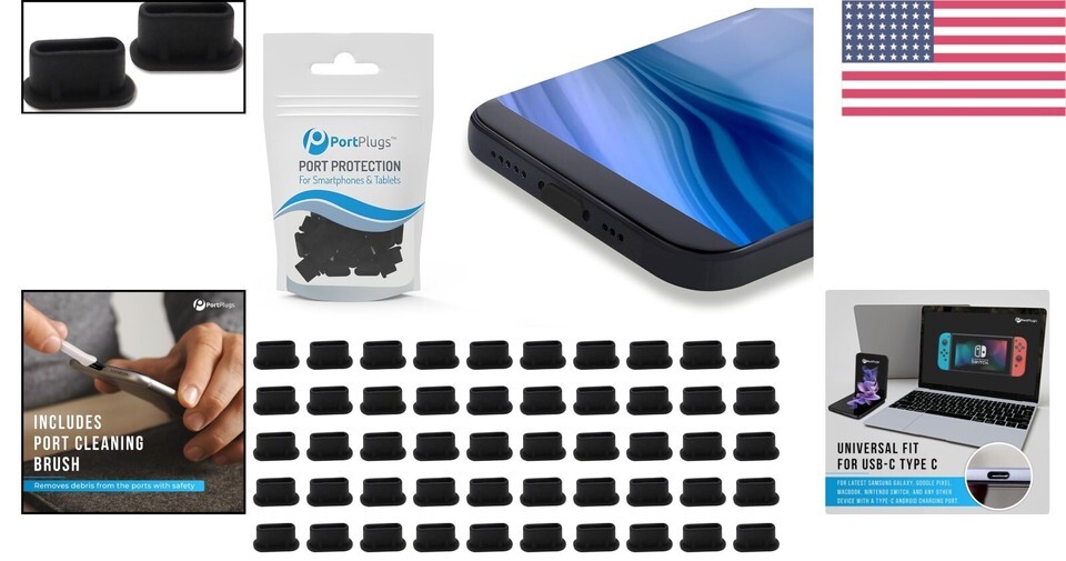 - 50-Pack USB-C Plugs & Cleaning Brush - Protects iPhone 16, Galaxy S24 & More