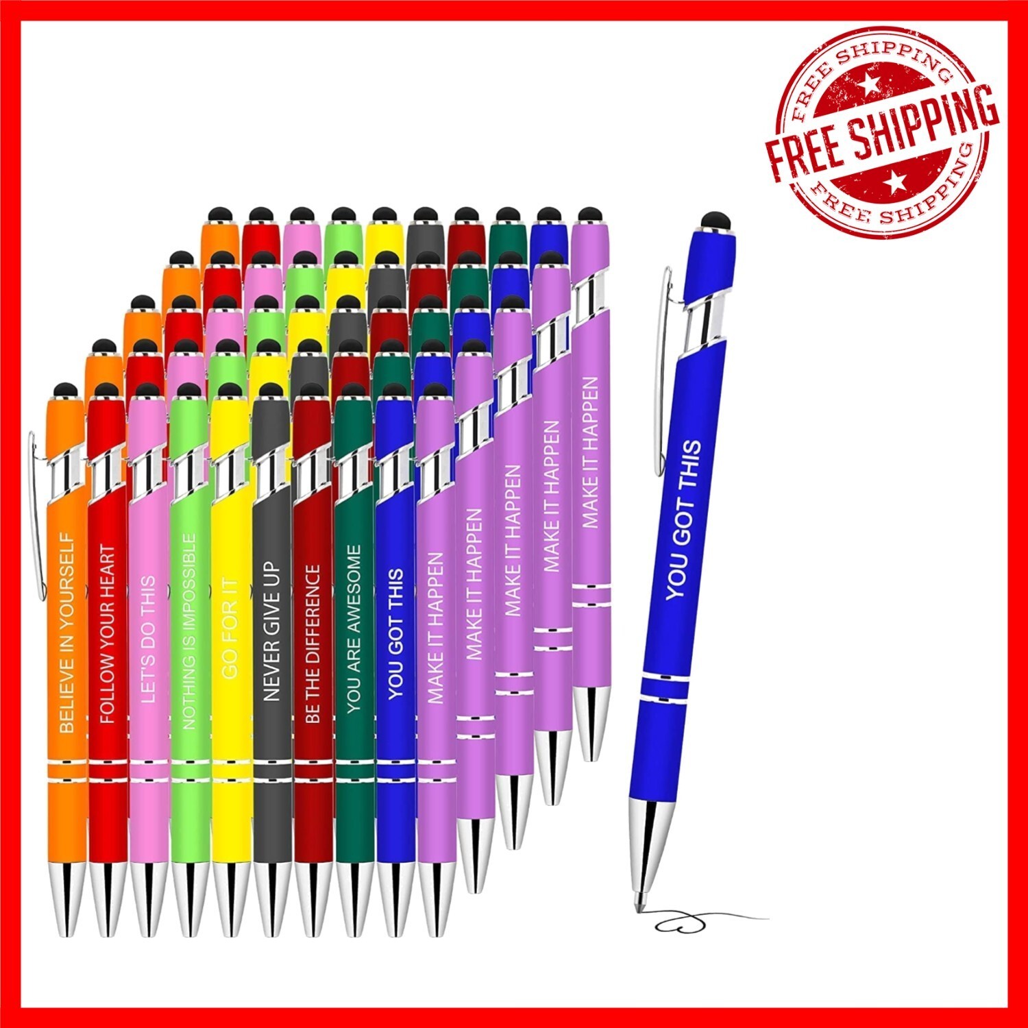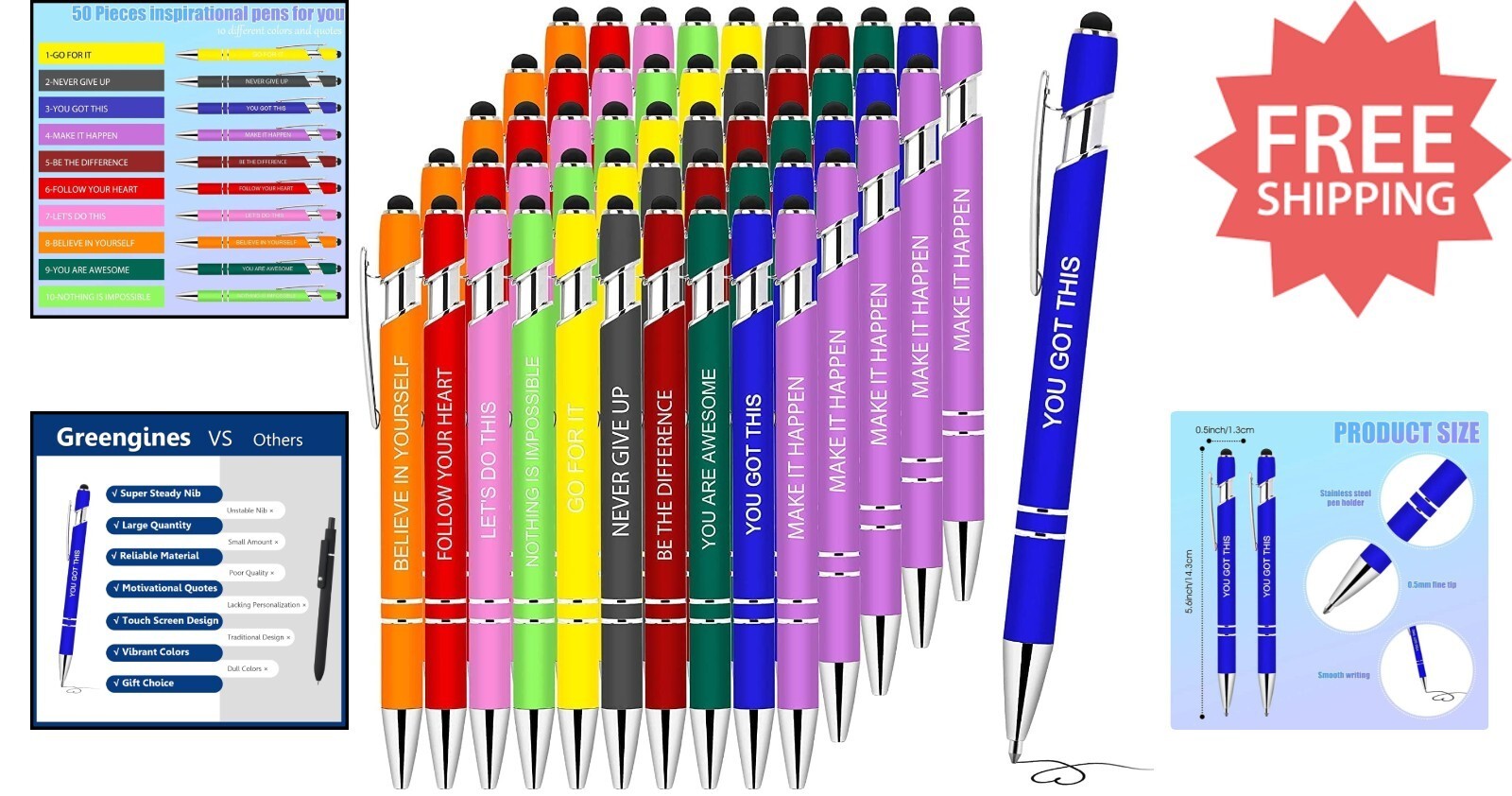 50-Piece Motivational Ballpoint Pens Set with Stylus for Inspirational Gifting