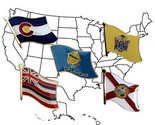 Our single lapel pins are a great way to show support or show off your heritage. The pins are die-struck from a high quality steel alloy. The recessed colors allow for finer reproduction of details and a top epoxy coating creates a surface smooth to the touch. This set includes one single Lapel Pin from each of the 50 US States.