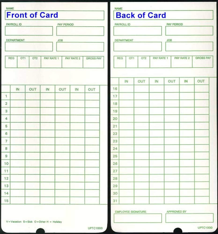 - 50 Uptc1000-1 Compatible Time Cards for Non-Calculating Upunch HN3000 Autoalign
