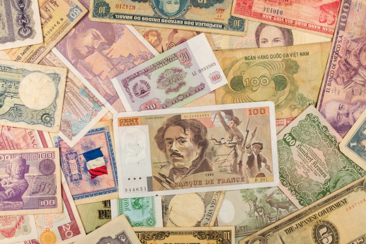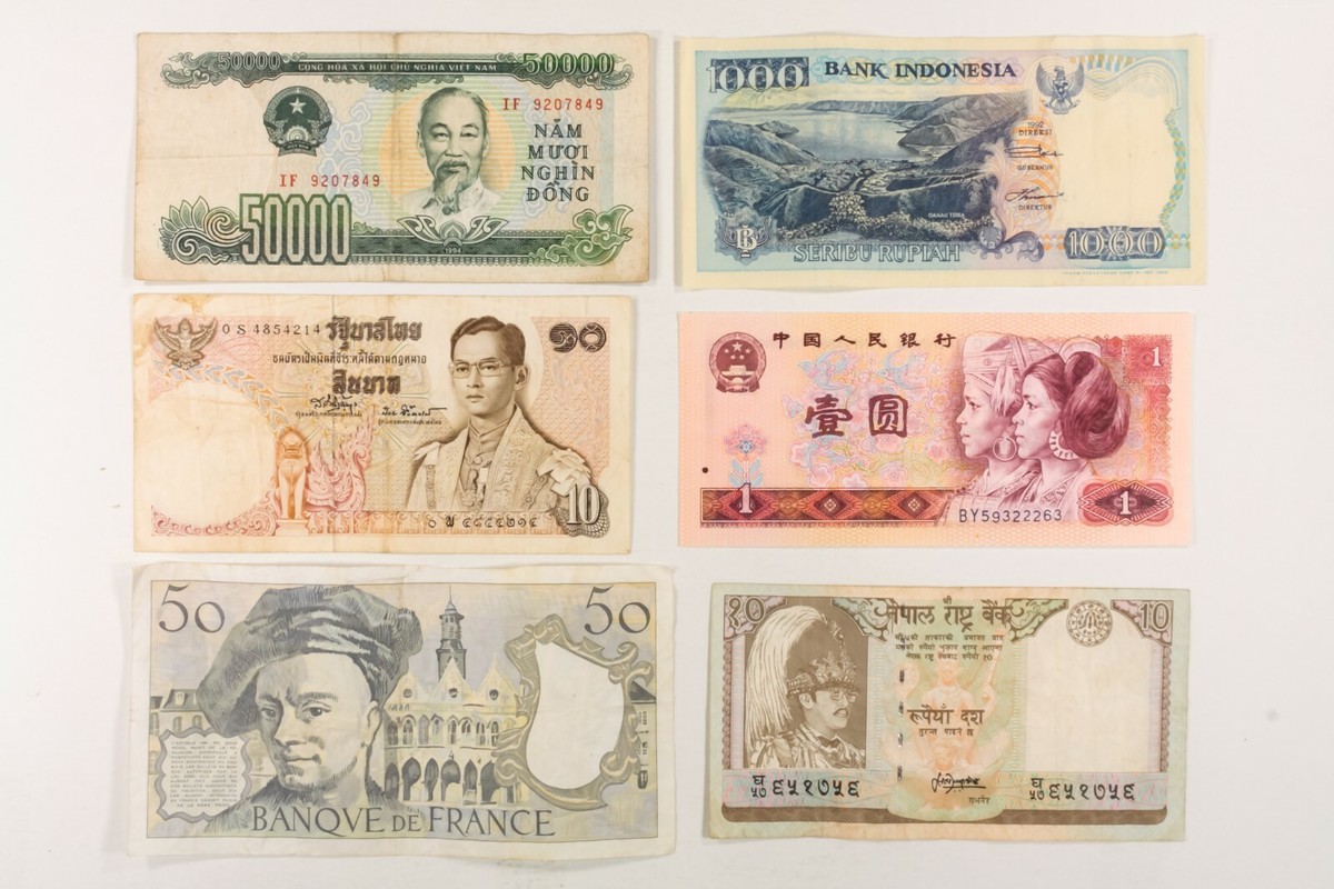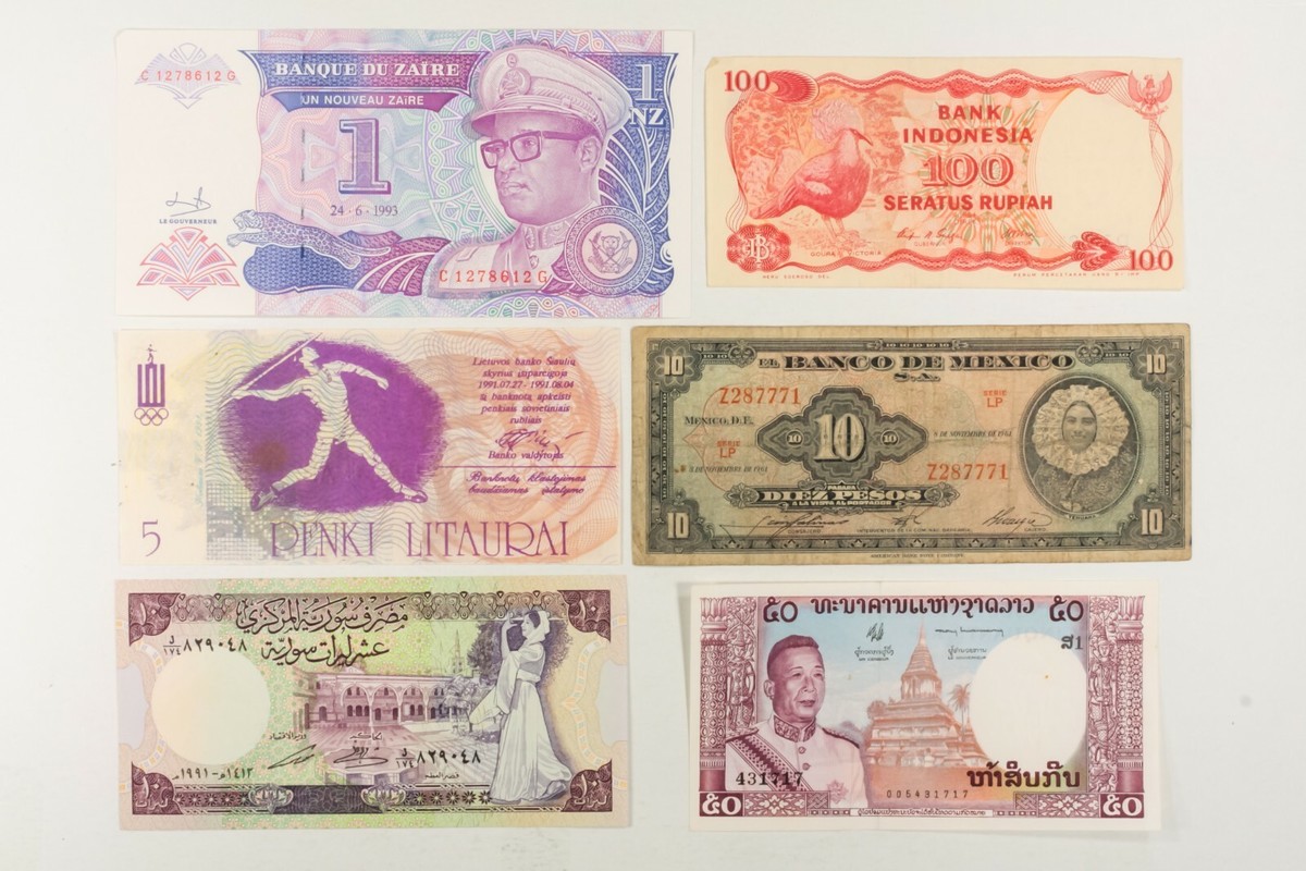 50 Weltbanknoten. Verschiedenes Europa, Asien, Zentral- & Südamerika