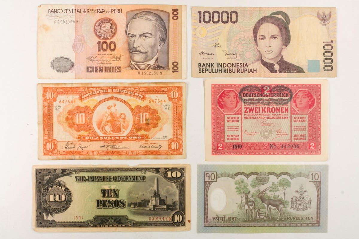 - 50 Weltbanknoten. Verschiedenes Europa, Asien, Zentral- & Südamerika