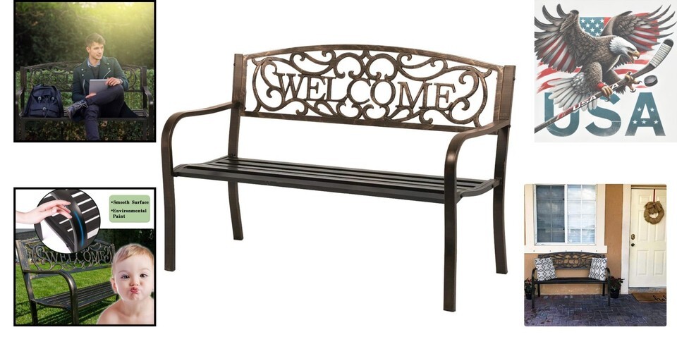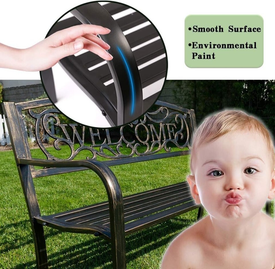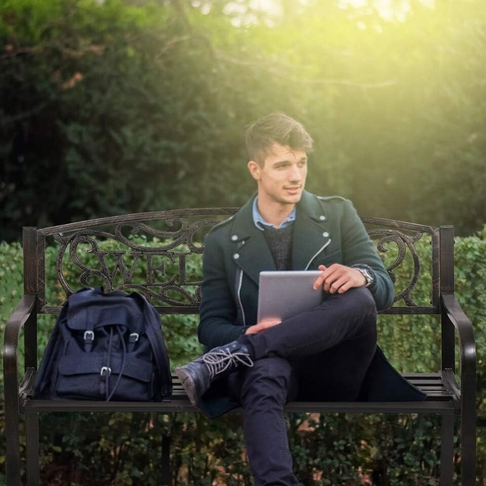 - 50 inch Metal Garden Bench Outdoor Porch Yard Furniture Bronze Steel Frame