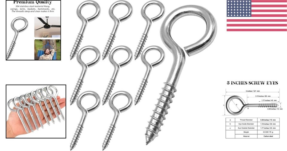 - 500 LBS Capacity Eye Hooks - 8 Pcs Heavy Duty Stainless Steel for Secure Hanging