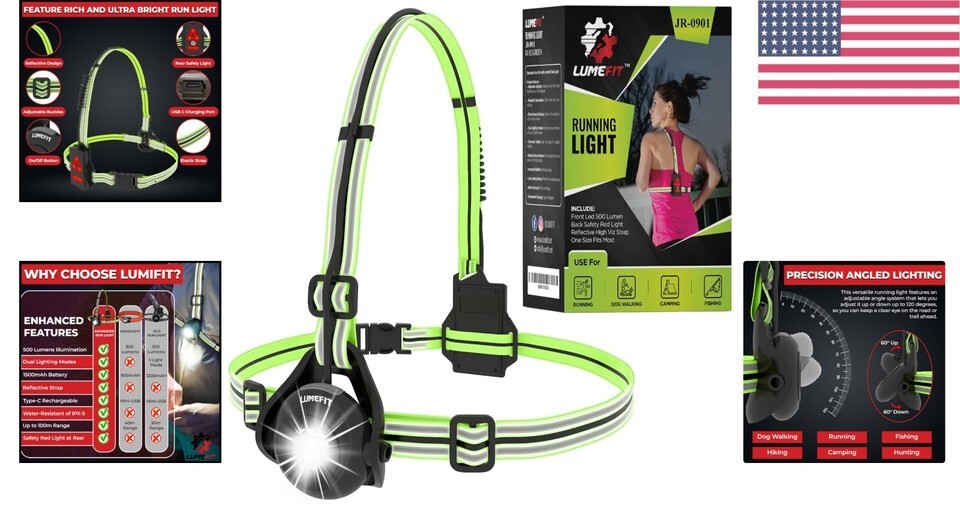 Reflective Light Running Vest: A necessity for joggers, runners, and dog walkers, this LED running light boasts powerful illumination to enhance your safety on streets or hiking trails in low-light and nighttime conditions.