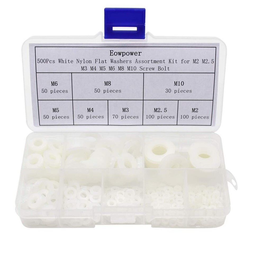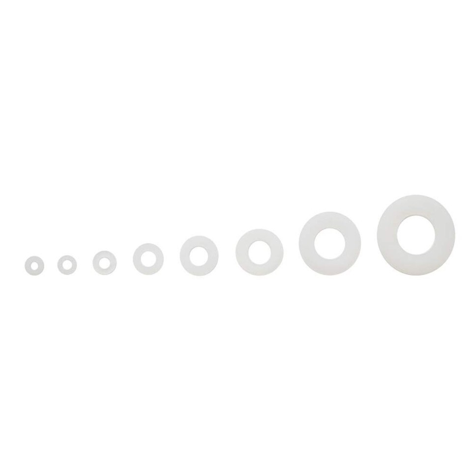 - 500 Pcs Nylon Flat Washers Assortment M2 M2.5 M3 M4 M5 M6 M8 M10 - White Kit