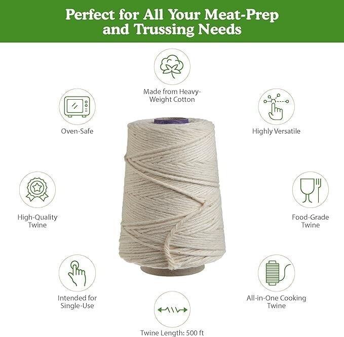 500ft Cotton Butchers Twine - Strong, Food-Safe String for Trussing and Crafts
