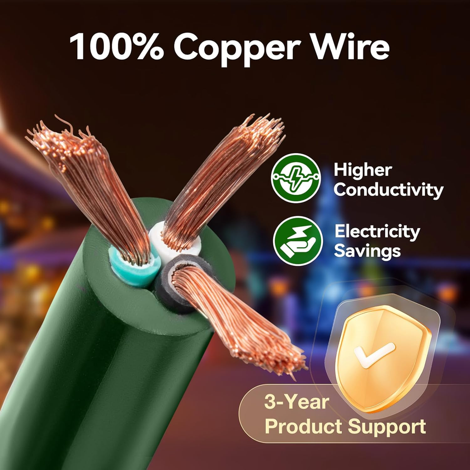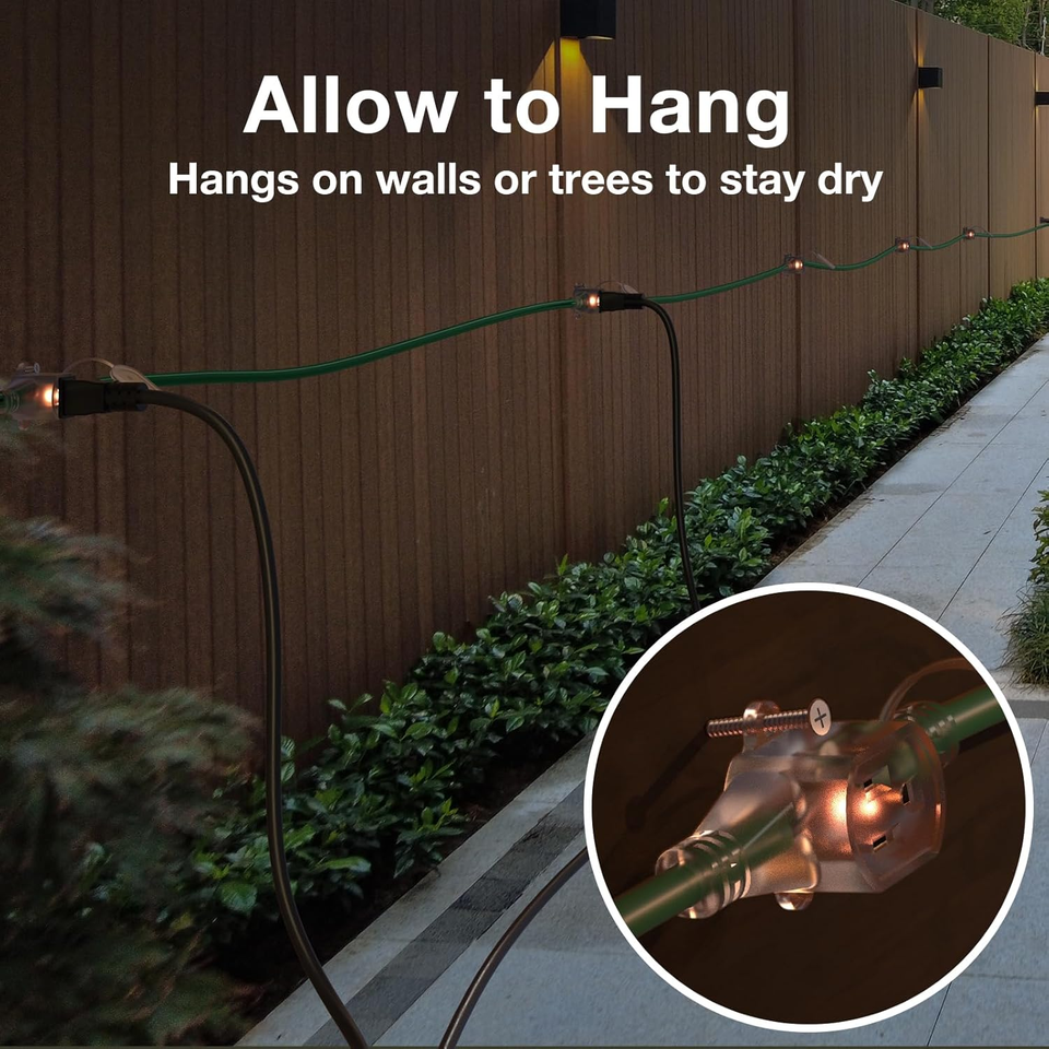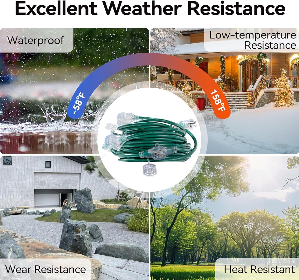 Weather Resistance: The cords jacket are coated with PVC, which is waterproof, antifreeze, abrasion-resistant, flame-retardant and corrosion-resistant, operating temperature range of -58F to +158F. Can be used for outdoor Christmas decoration lights for a long time