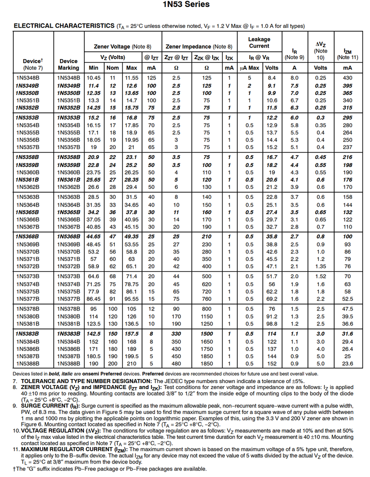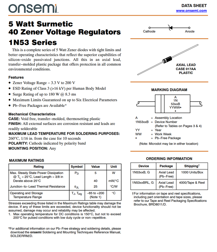 1N5352B, 1N5352BRL, 1N5352BRLG |
