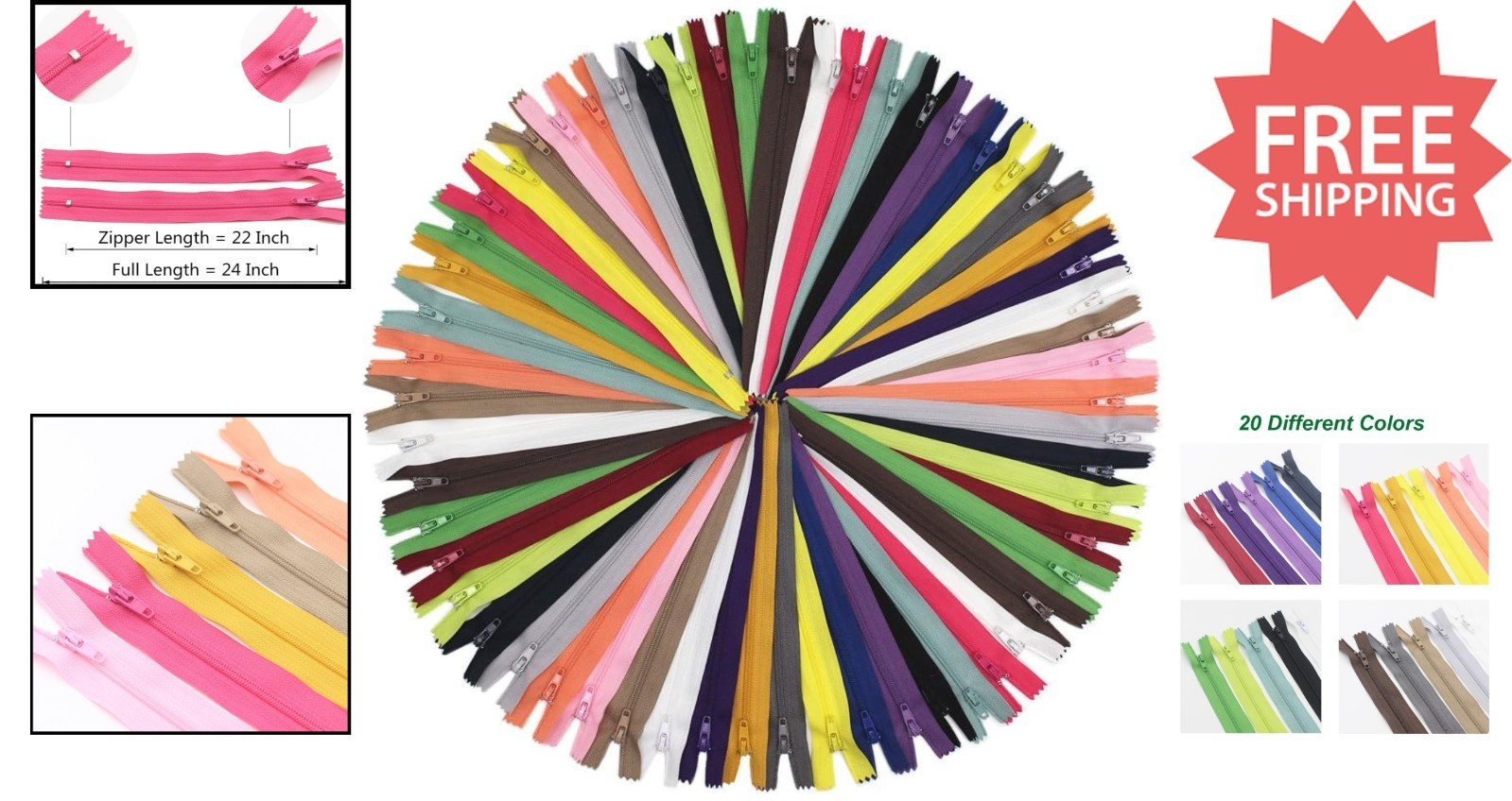 - 50pcs 22 Inch Nylon Coil Zippers - 20 Colors Pack for Creative Sewing Projects