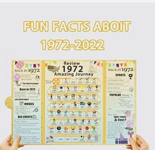 Celebrate your milestone 51st birthday with this fabulous party decoration poster from The Party Post! Measuring 11 x 14 inches, it features a retro "Back In 1972" design that's perfect for anyone born in that year. The poster comes with a 30-day money back guarantee, and free and fast two-day shipping is included.