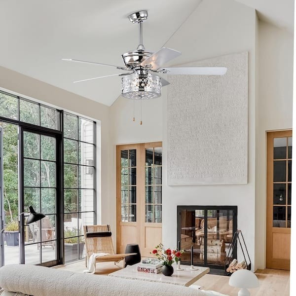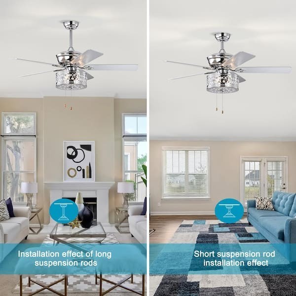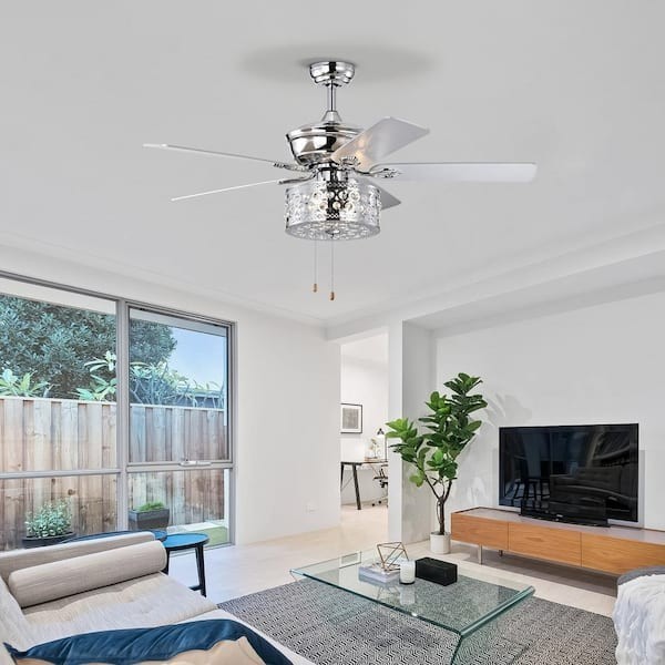 - 52 in. Indoor/Outdoor Chrome Ceiling Fan with Lights and 5 Blades w Pull Chain