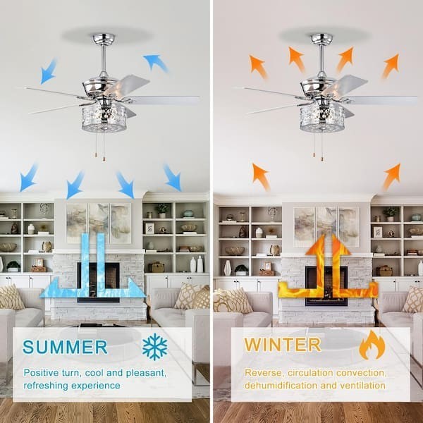 The chrome-plated metal shade of the farmhouse-look ceiling fan complements the 5 fan blades, showing off the unique charm of a farmhouse and adding a vintage aesthetic to the interior. The versatile and versatile ceiling fan has 3 speeds and timer settings that can be easily adjusted via the remote control. There is a reverse button on the ceiling fan body that can change the rotation direction of the ceiling fan.