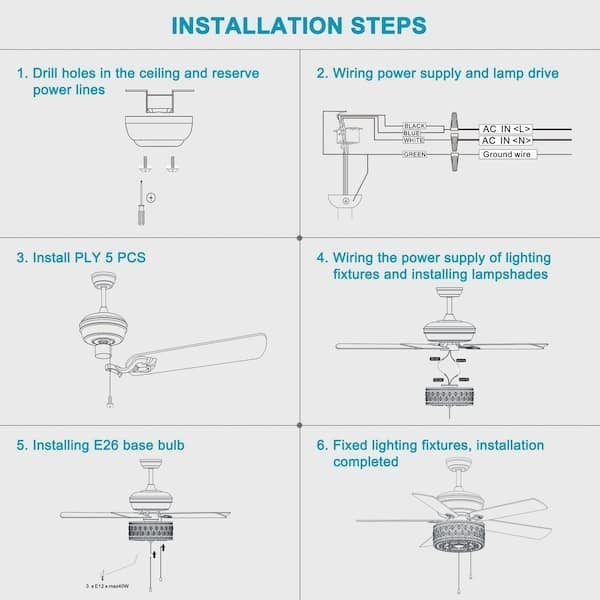 Ceiling fan requires 3 x 40-Watt E16 bulbs (not included) to light up