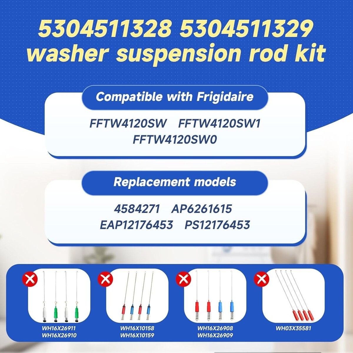- 5304511328 5304511329 4Pcs Washer Suspension Rod Compatible with Frigidaire...