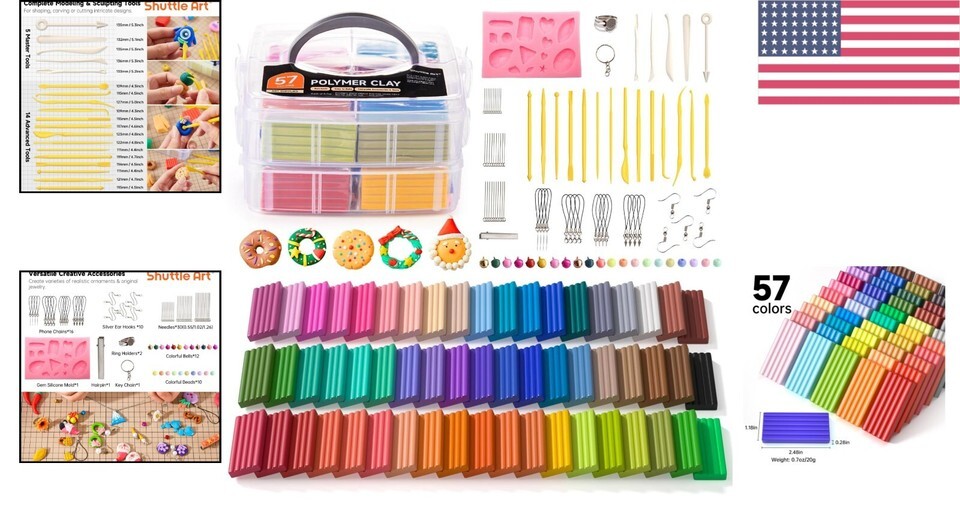 - 57 Colors of Non-Toxic Polymer Clay - Creative Crafting Kit with Accessories